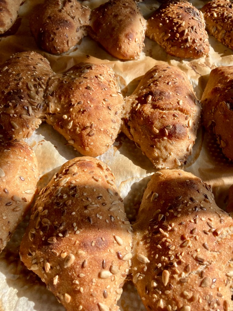 Alle Kleinteile ebenfalls mit Sauerteig und sehr wenig Hefe gelockert.