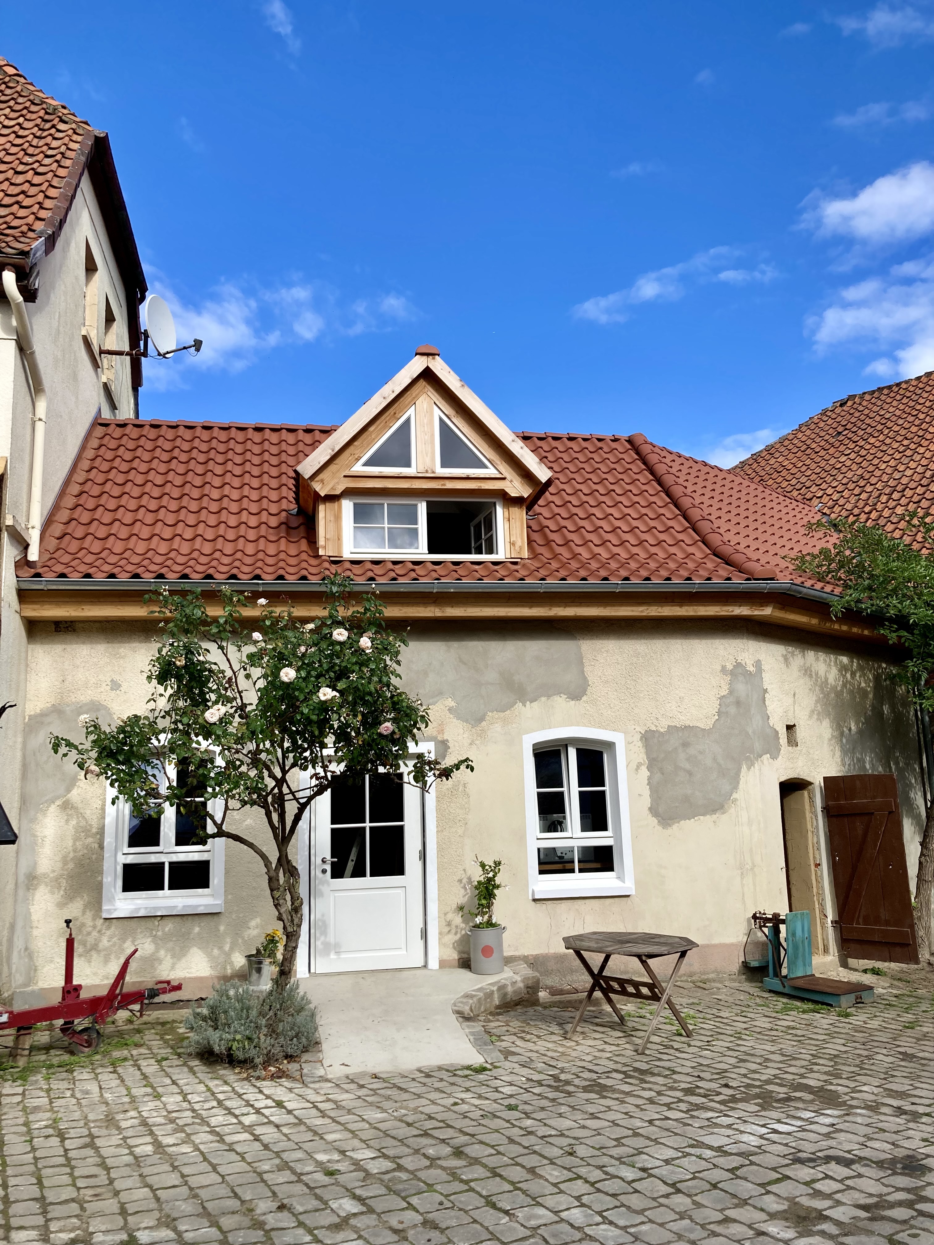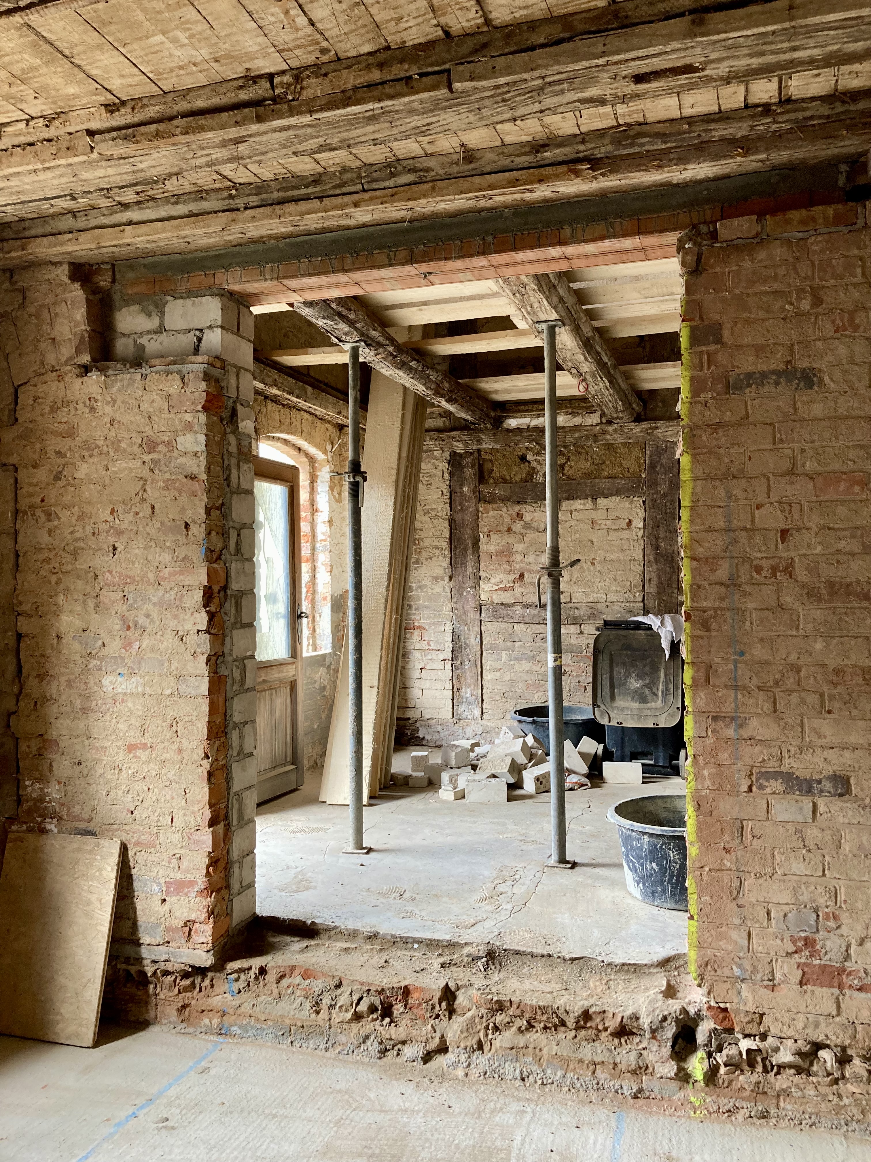 Seitdem hatte ich, mit Unterstützung vieler HandwerkerInnen, dieses alte Zwischengebäude, bis ins Frühjahr 2025 hinein, zur Holzofenbäckerei umgebaut.